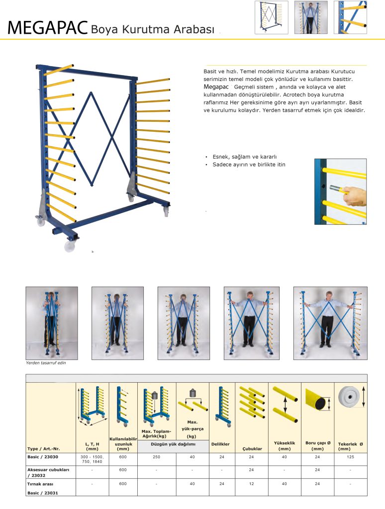 Basit ve hızlı. Temel modelimiz Kurutma arabası Kurutucu serimizin temel modeli çok yönlüdür ve kullanımı basittir. Megapac Geçmeli sistem , anında ve kolayca ve alet kullanmadan dönüştürülebilir. Megapac boya kurutma raflarımız Her gereksinime göre ayrı ayrı uyarlanmıştır. Basit ve kurulumu kolaydır. Yerden tasarruf etmek için çok idealdir